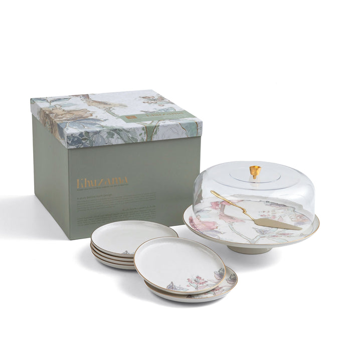 أغمرِ نفسكِ بجمال الطبيعة مع حامل الكيك المصنوع من البورسلان عالي الجودة ، حامل الكيك مصمم بتصميم يحاكِ جميع الأذواق ، تم تصميمها مع الاهتمام الدقيق بالتفاصيل حيث جمعت بين جمال الشكل والأداء كتحفة فنيه على مائدة ضيافتك .