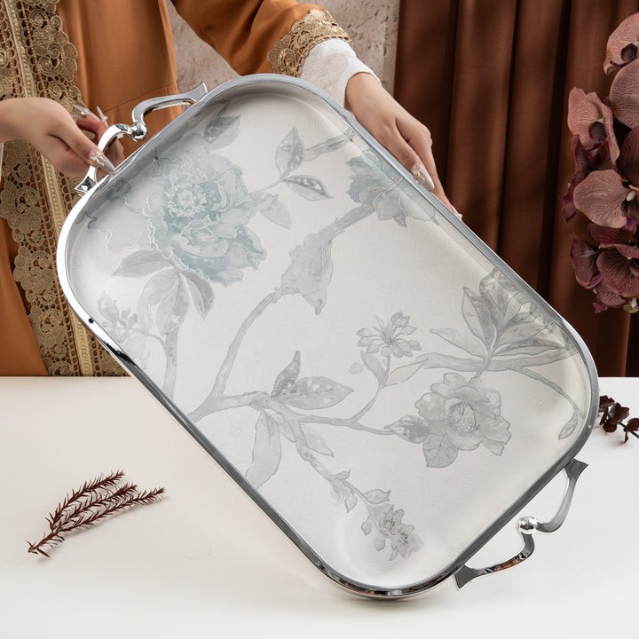صينية تقديم فاخرة من خزامة - رمادي وفضي